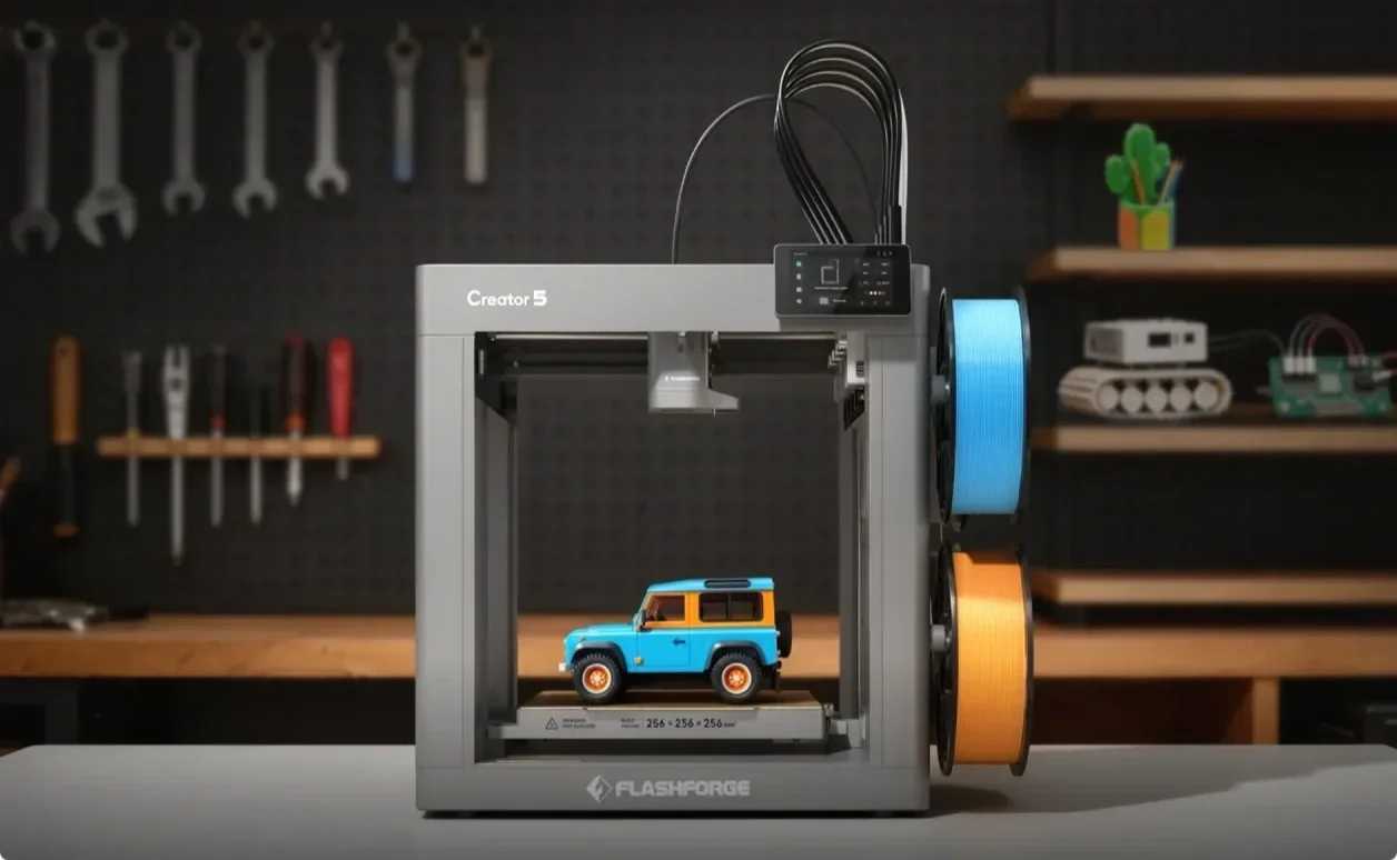 The Flashforge Creator 5 is attempting to push tool-changing 3D Printing to an accessible sub-$800 price point. The specs are competitive, the pricing is aggressive, and the FlashSwap system looks very capable at minimizing waste for multi-color and material printing.
